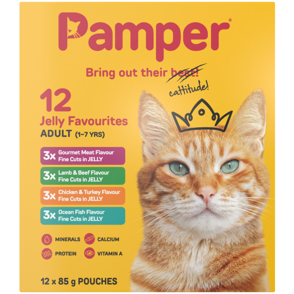 PAMPER CAT FOOD 12X85G F/CUTS M/PACK JELLY 1 x EACH