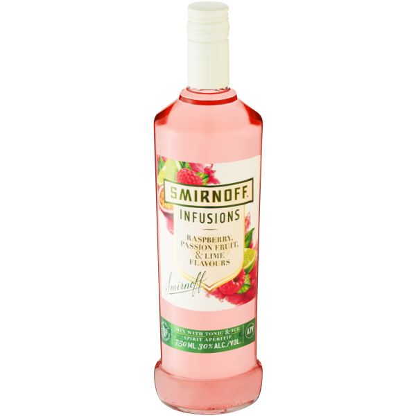 SMIRNOFF INF VODKA R/BRY P/FRT&LME 750ML VODKA